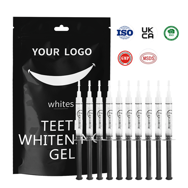 We offer customizable whitening gels to meet your specific needs, including gel concentration (0.1%-44% CP/HP, PAP), peroxide-free options, and volume choices (3ml, 5ml, 10ml). You can also personalize the gel tube color and packaging box for a unique branding touch. Create a tailored teeth whitening solution with our customization options.